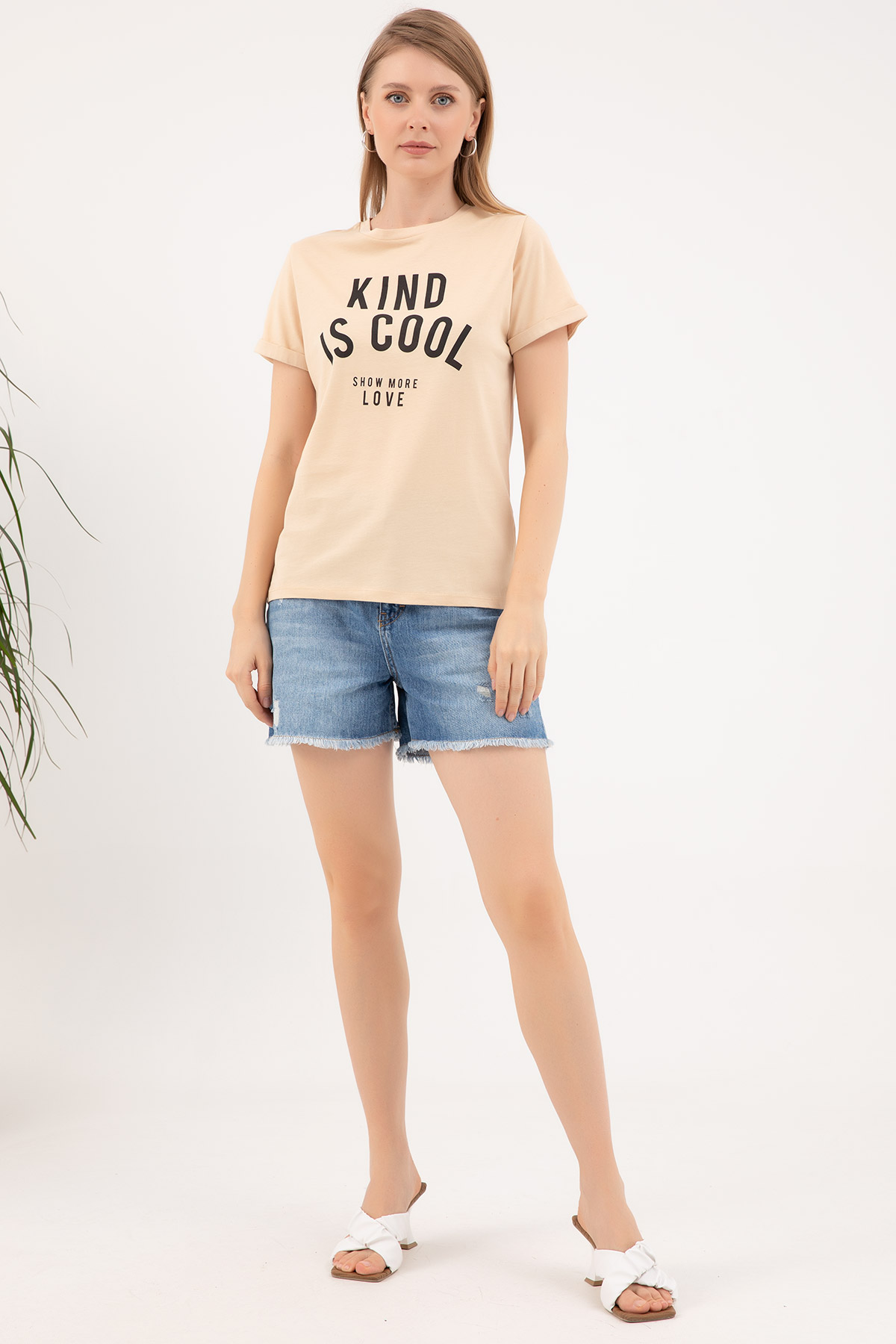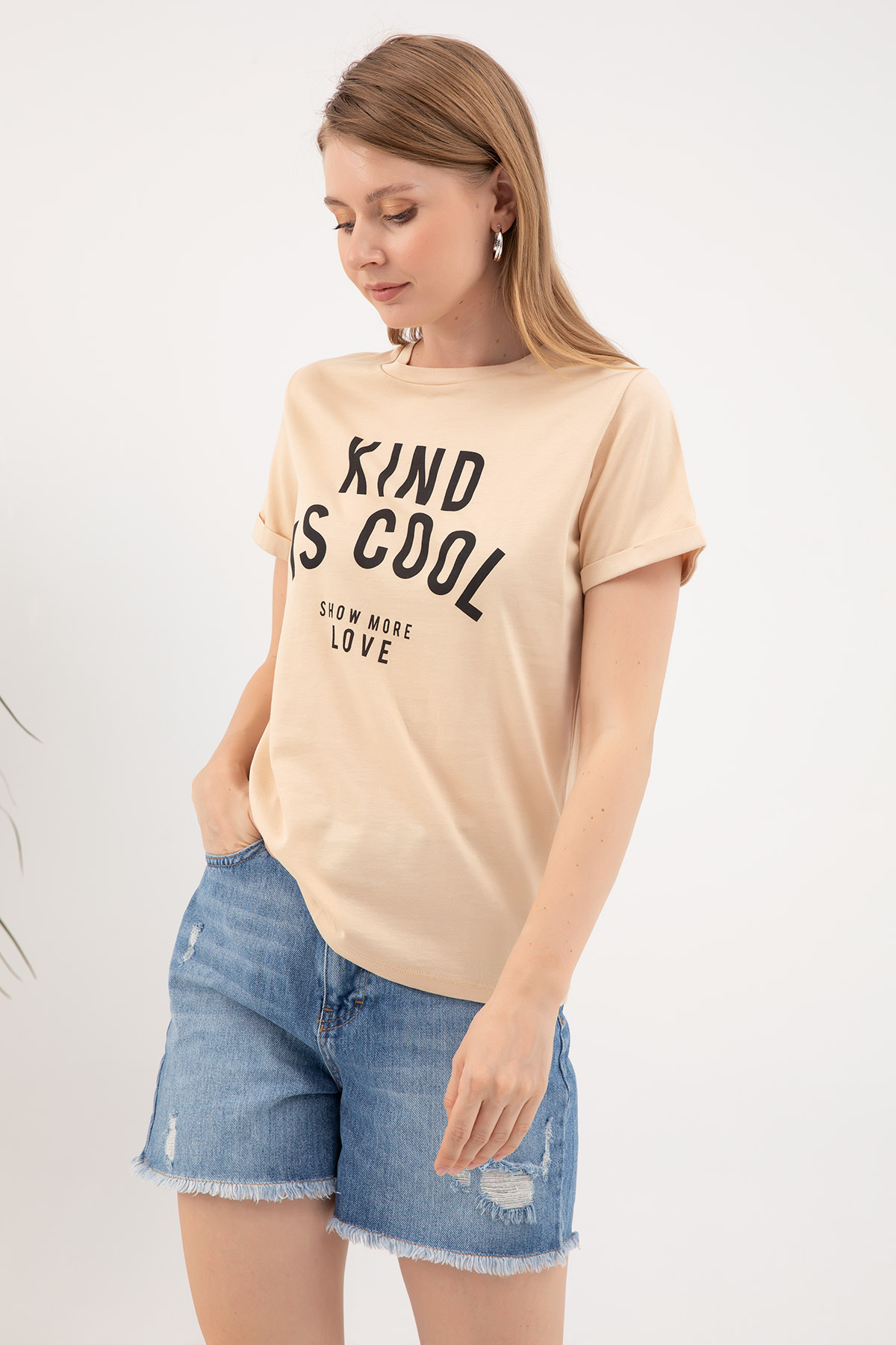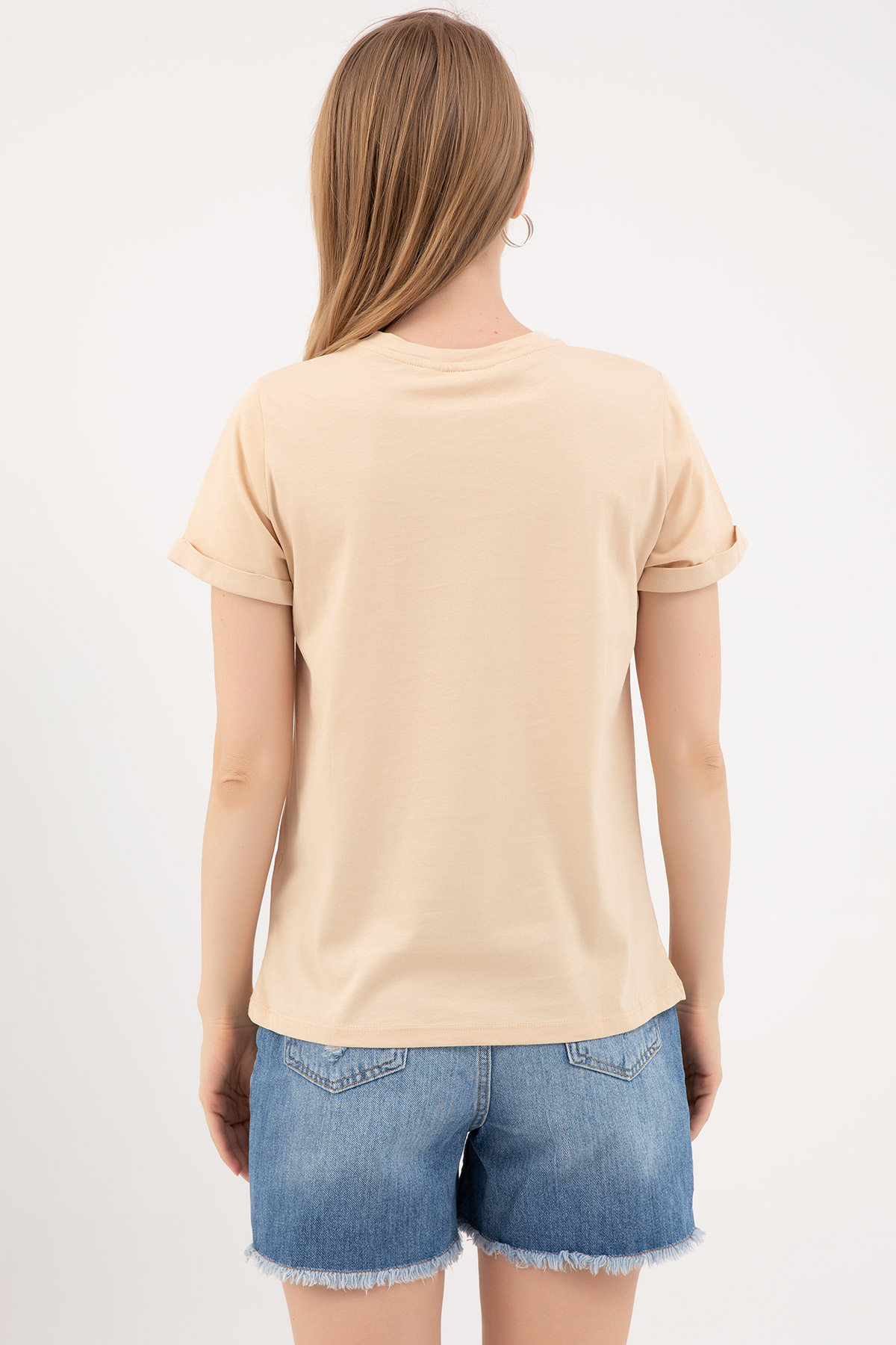 Sıfır Yaka T-shirt-Bej