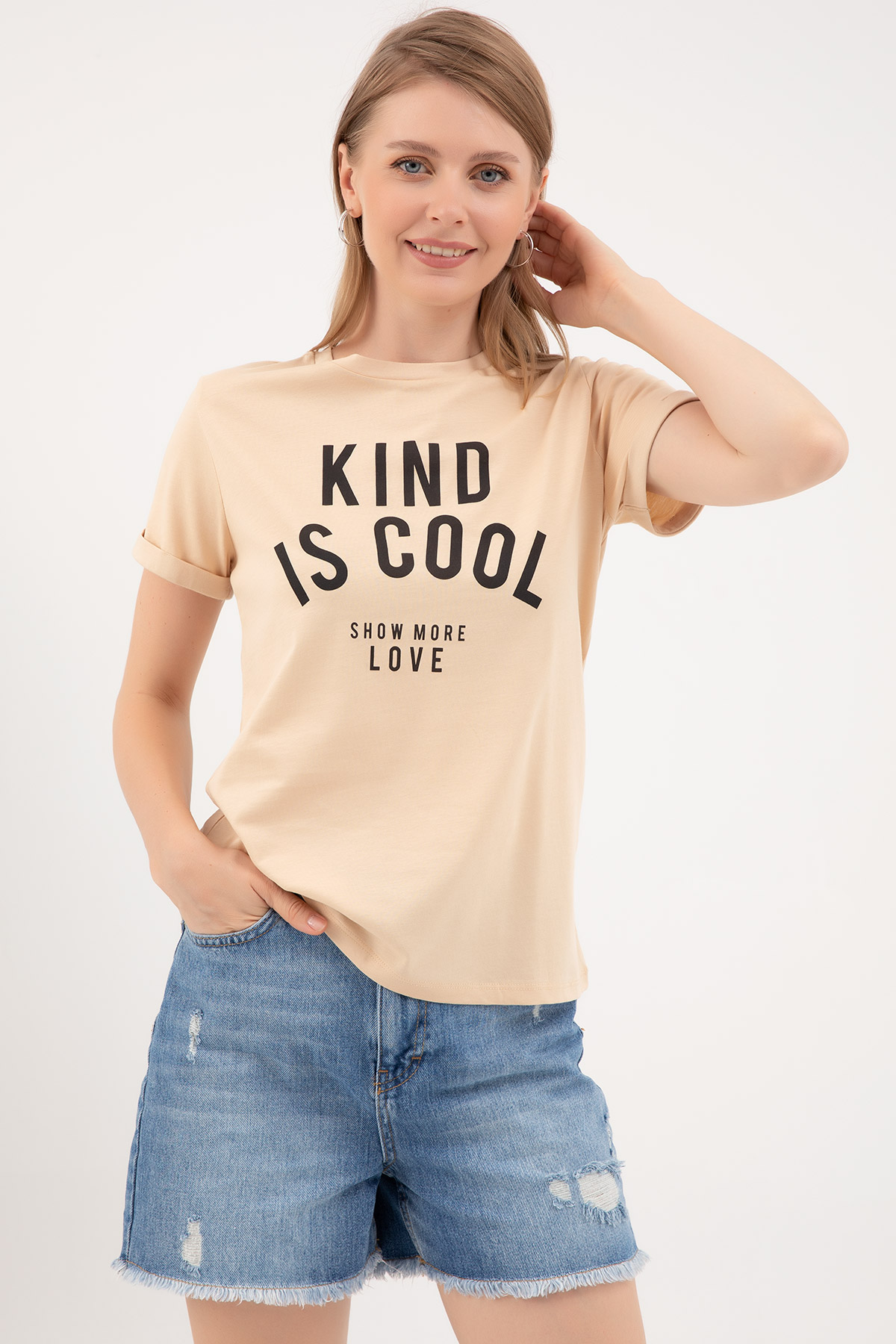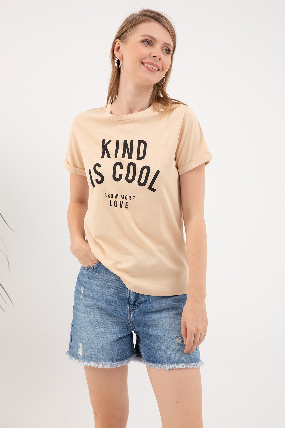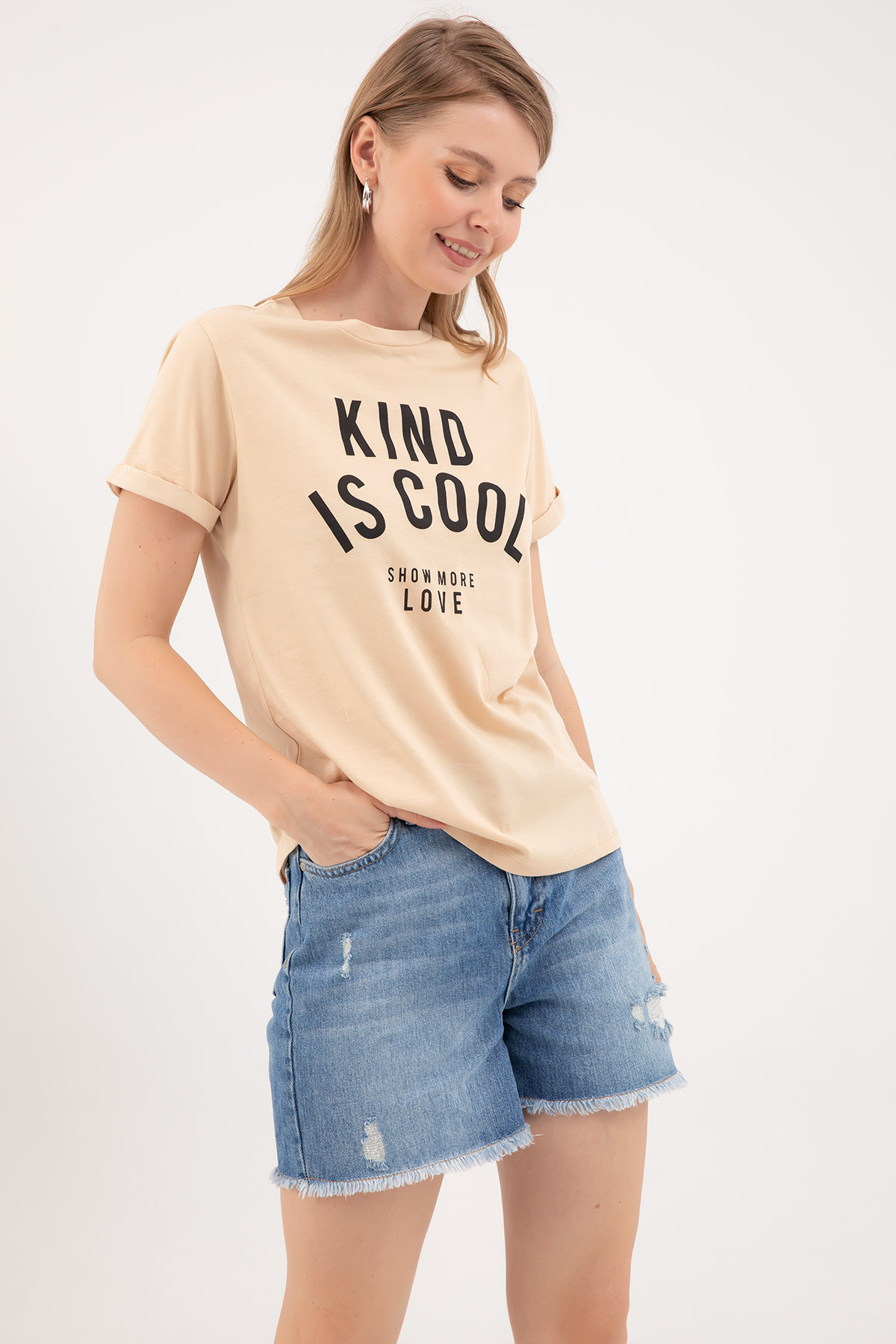 Sıfır Yaka T-shirt-Bej