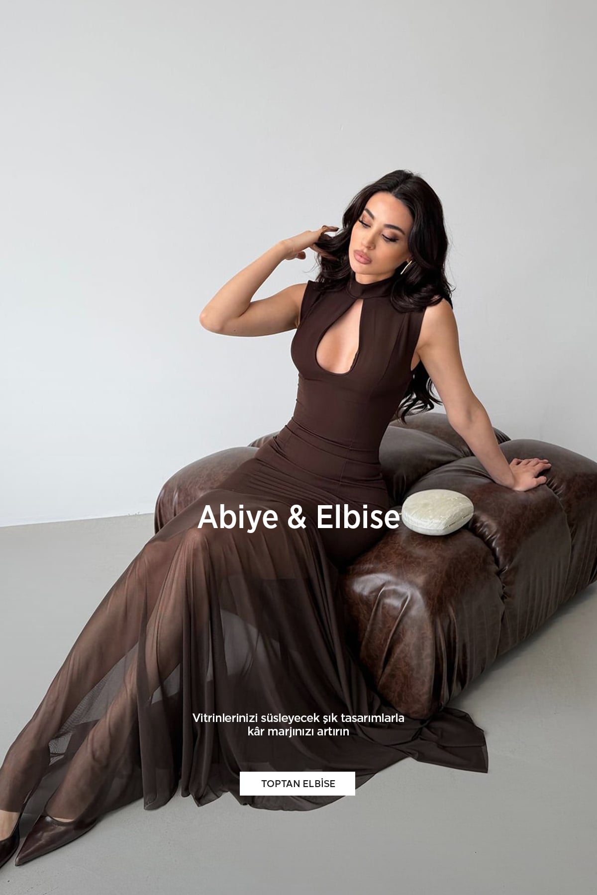 Eteği Tüllü Dökümlü Maxi Elbise 2776 - KAHVERENGİ