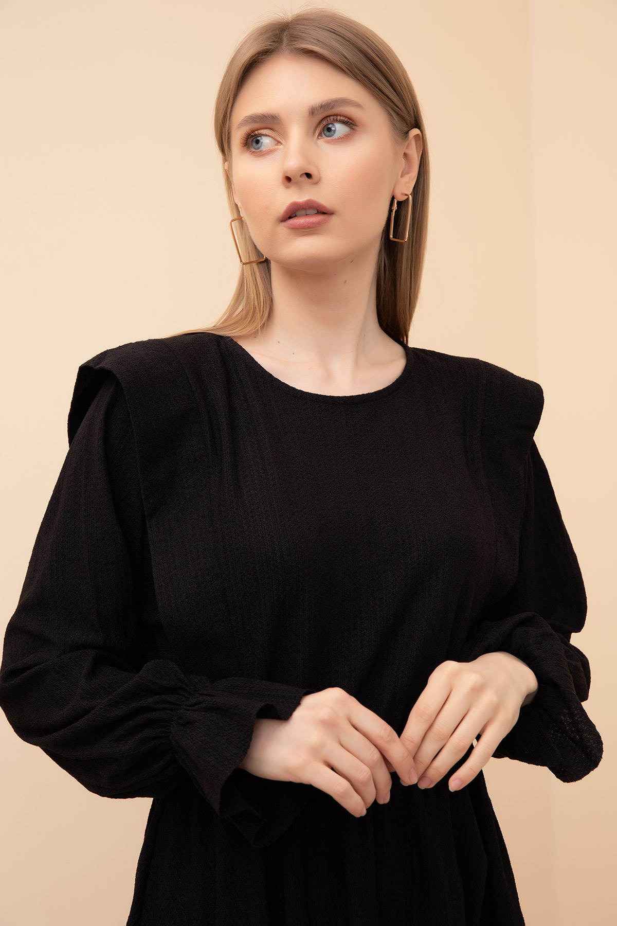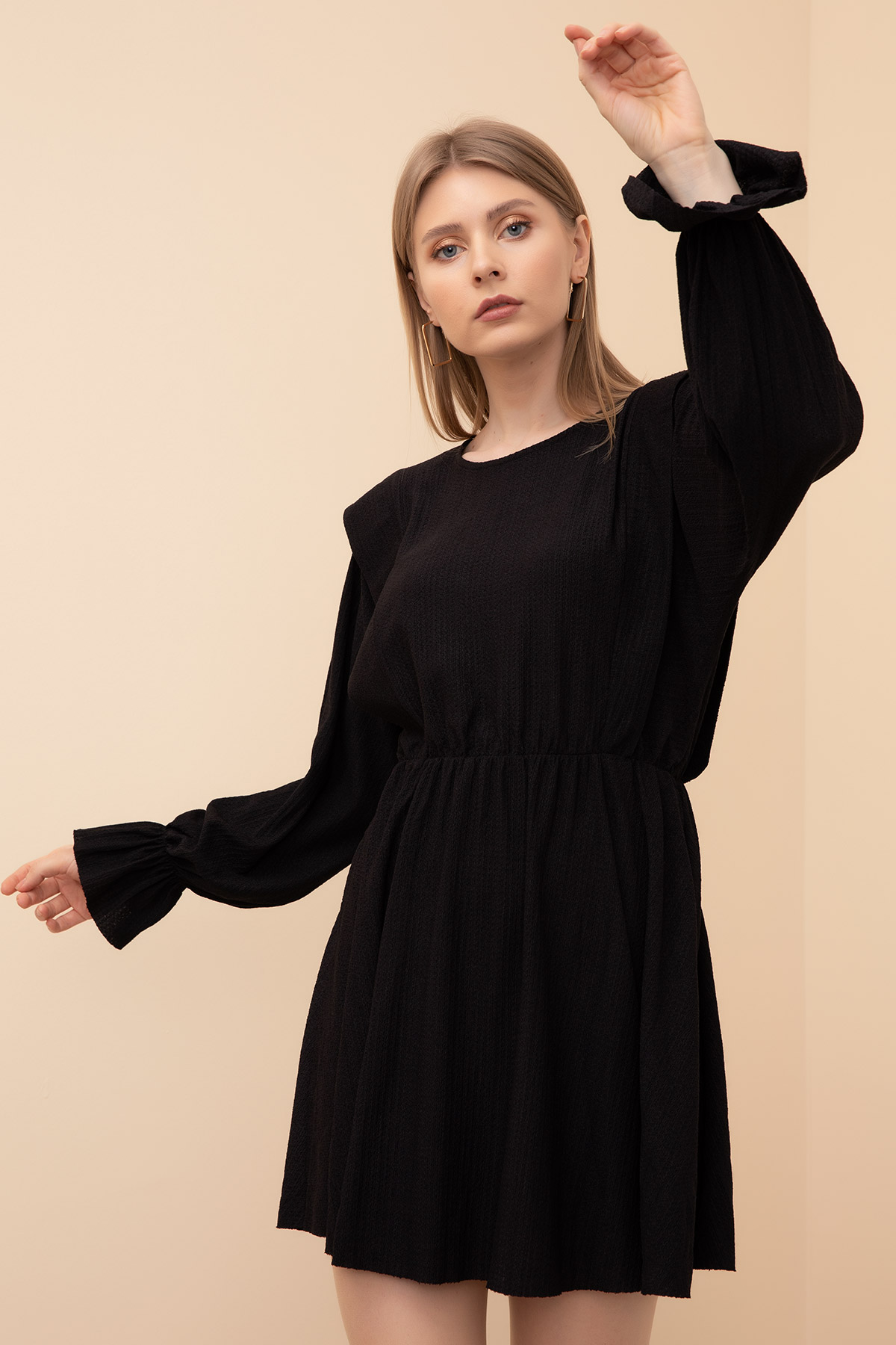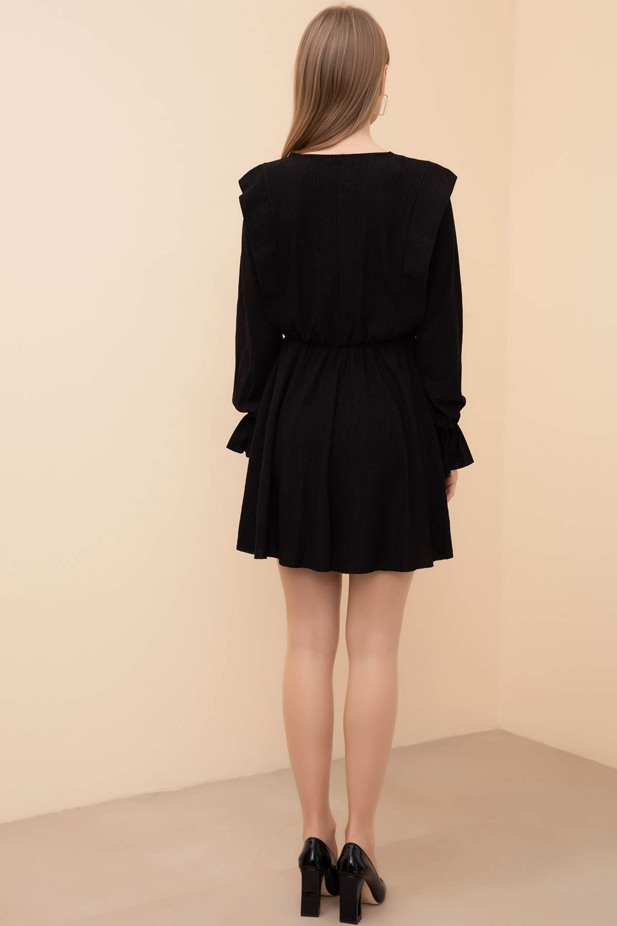 Bel Büzgülü Elbise-Siyah