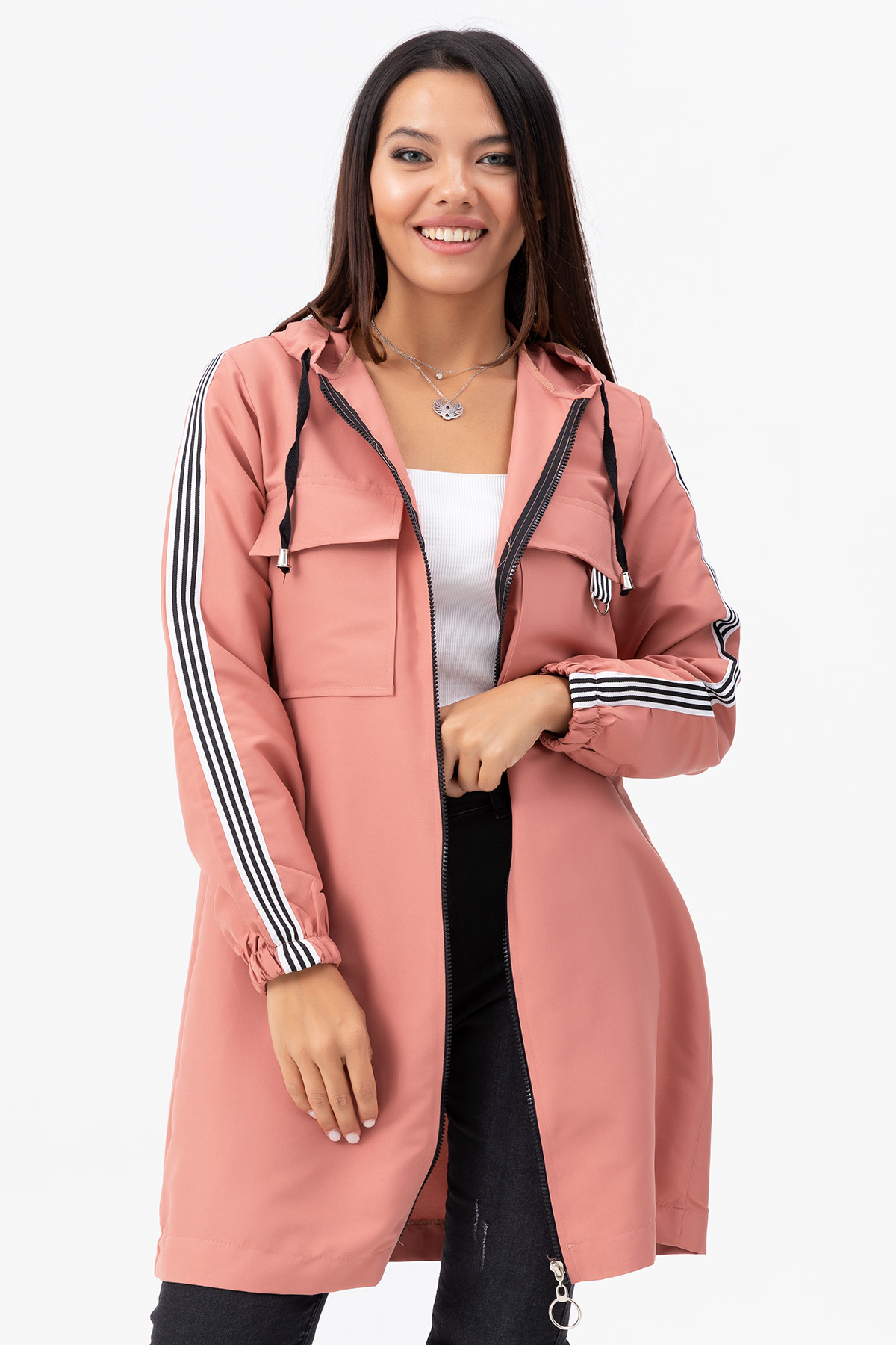 Cepli Kapüşonlu Trench-Gül Kurusu