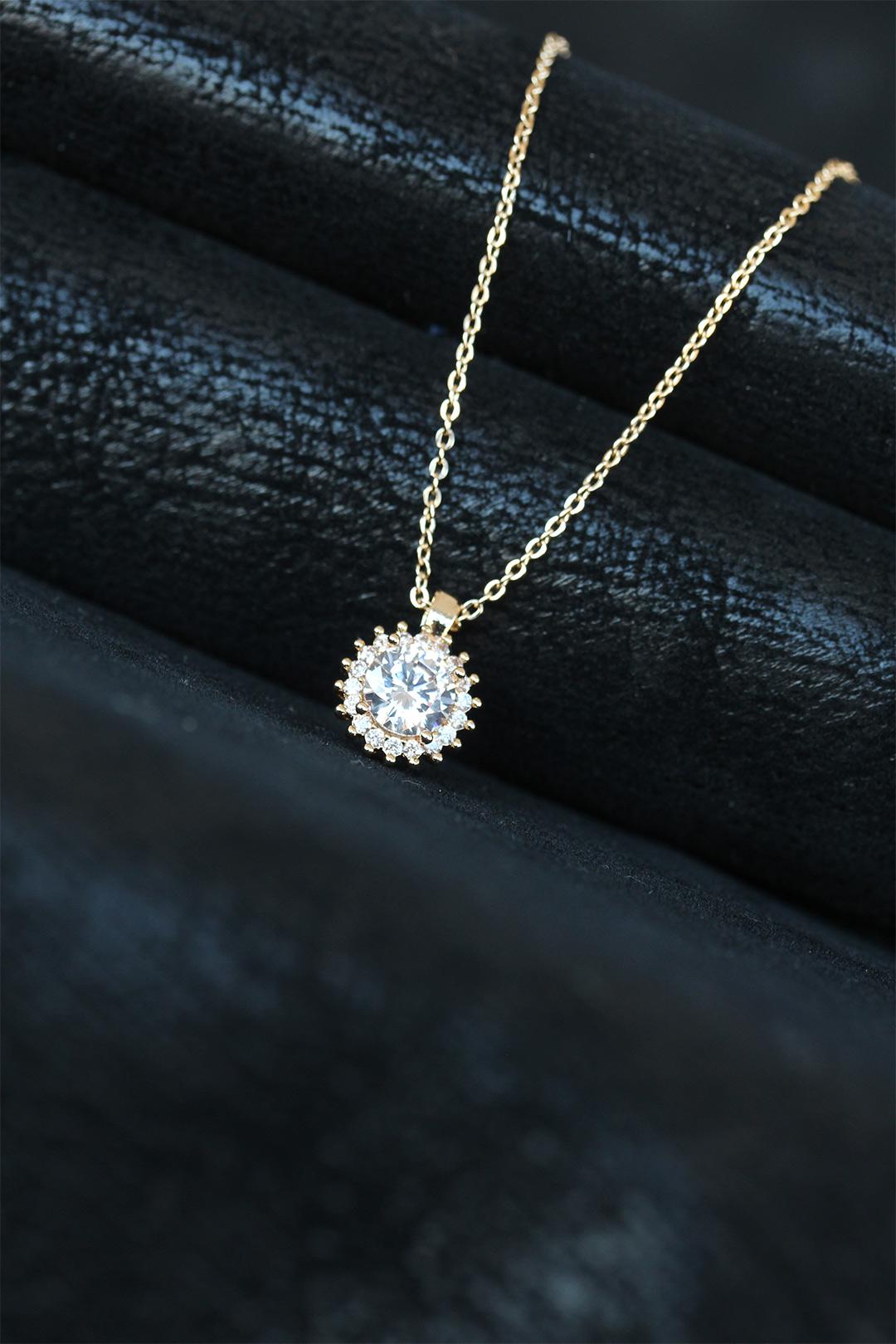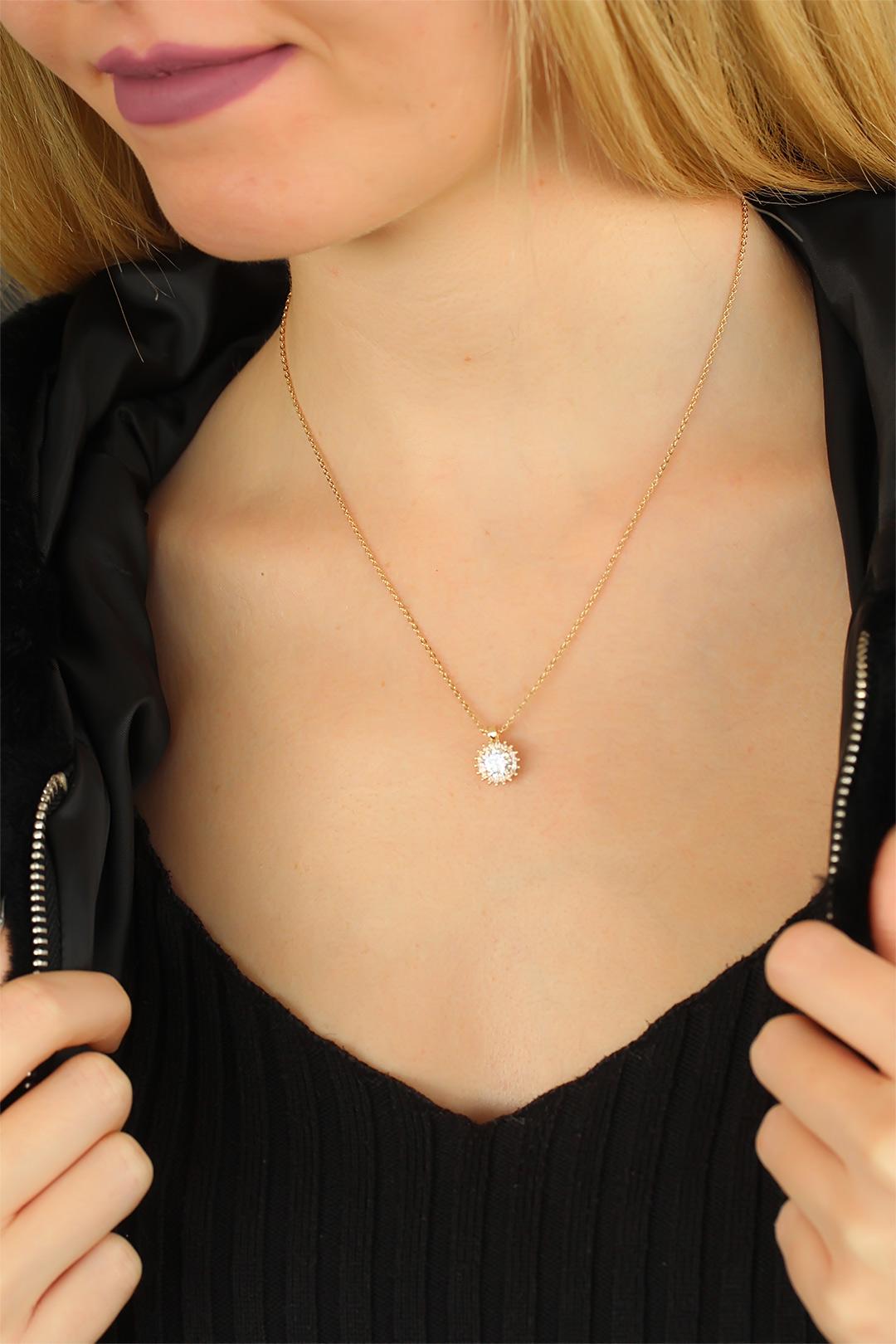 Çilek Figürlü Deri İpli Bayan Kolye-Altın
