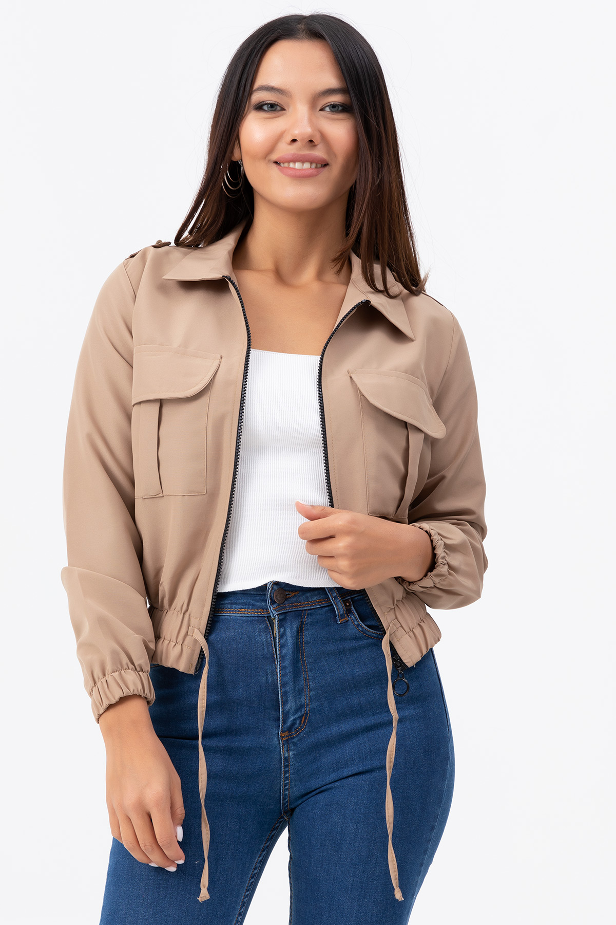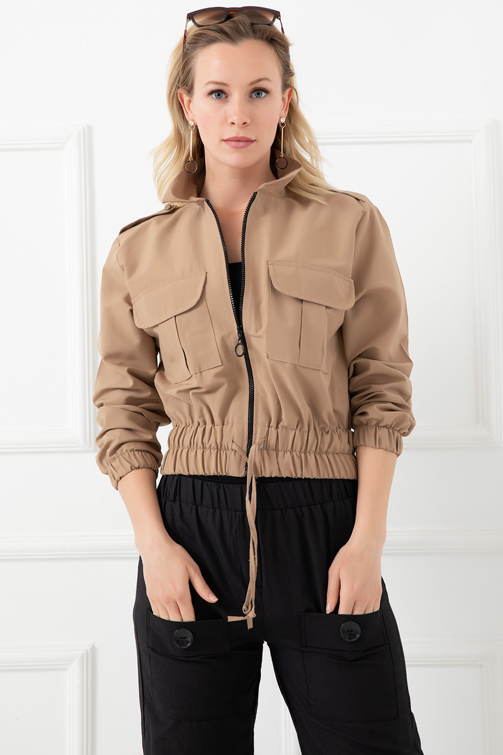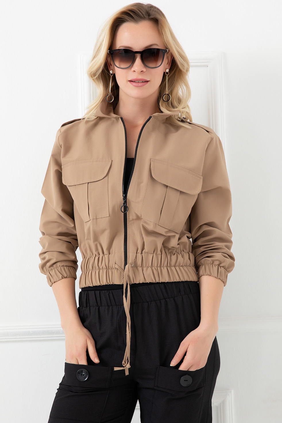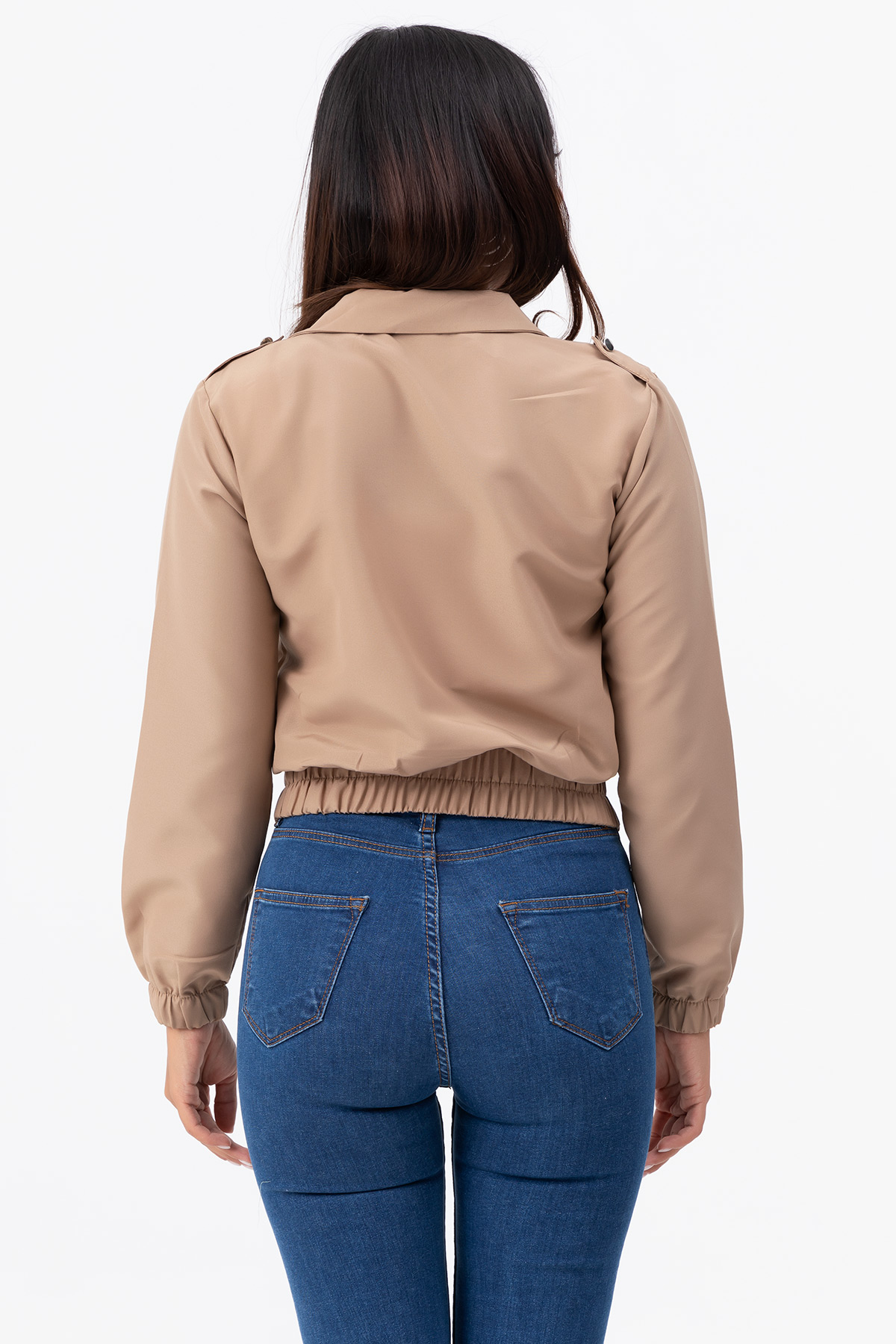 Fermuarlı Kısa Ceket-Vizon