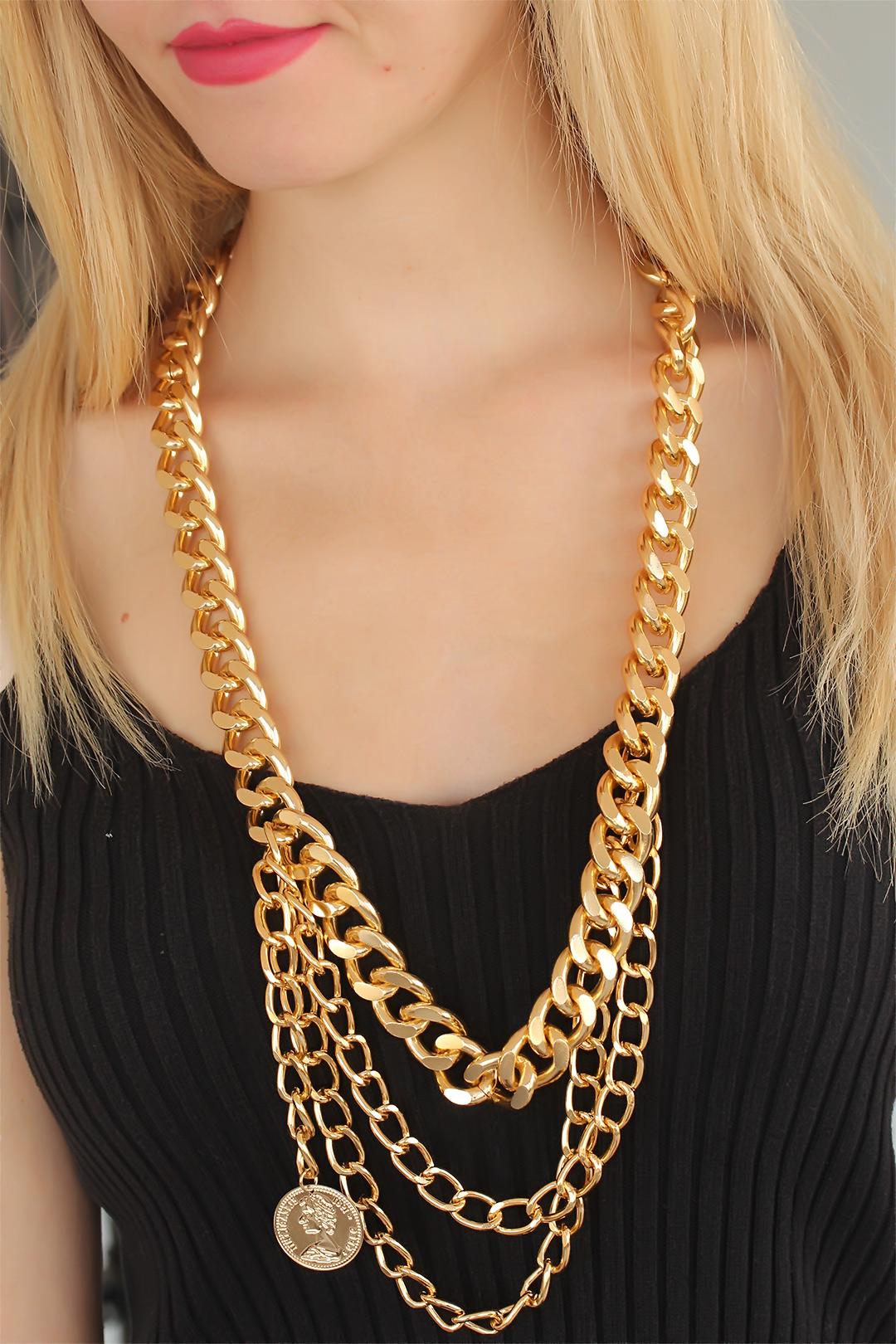 Gold Renk Çoklu Bayan Zincir Kolye-Altın