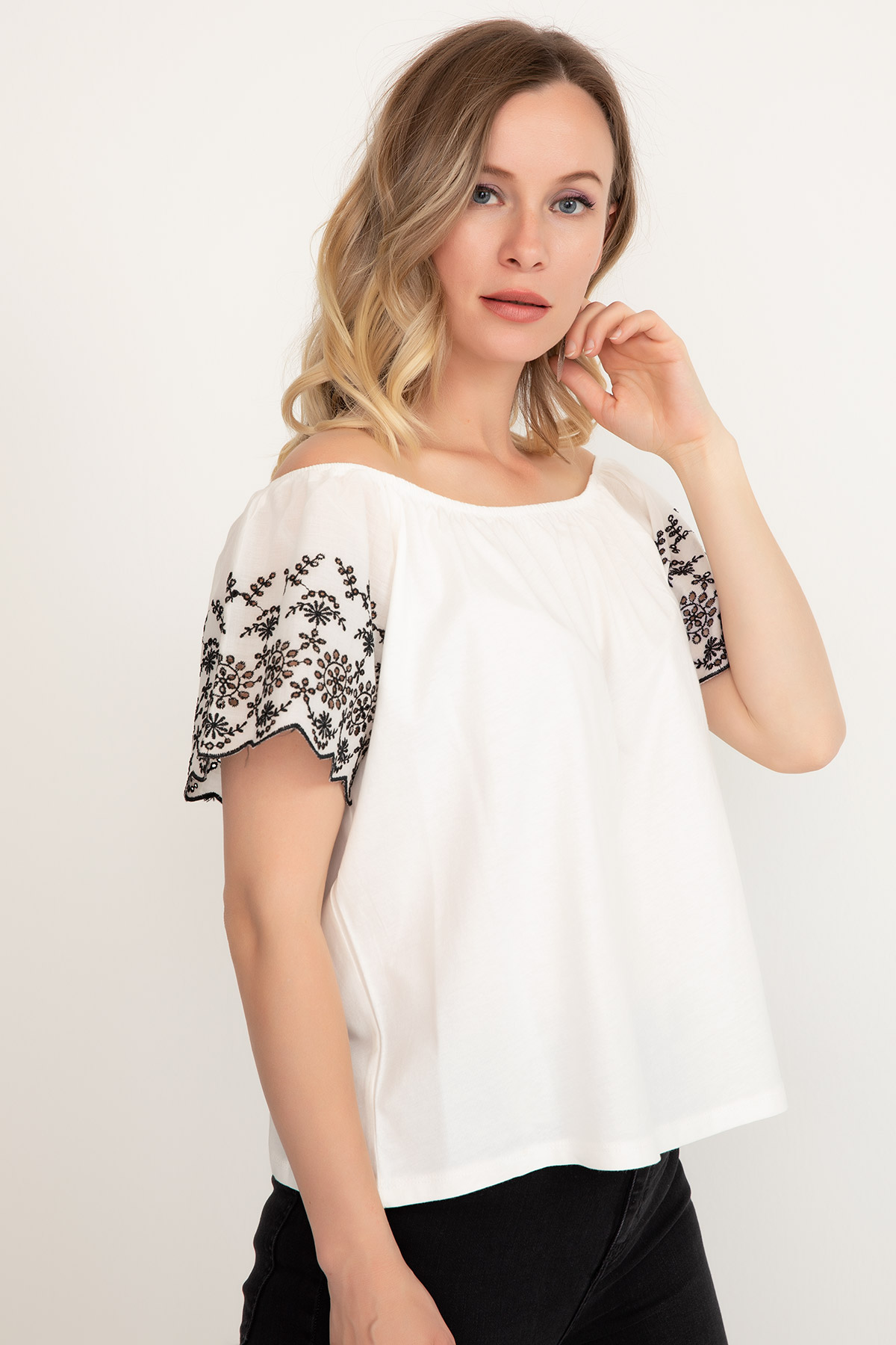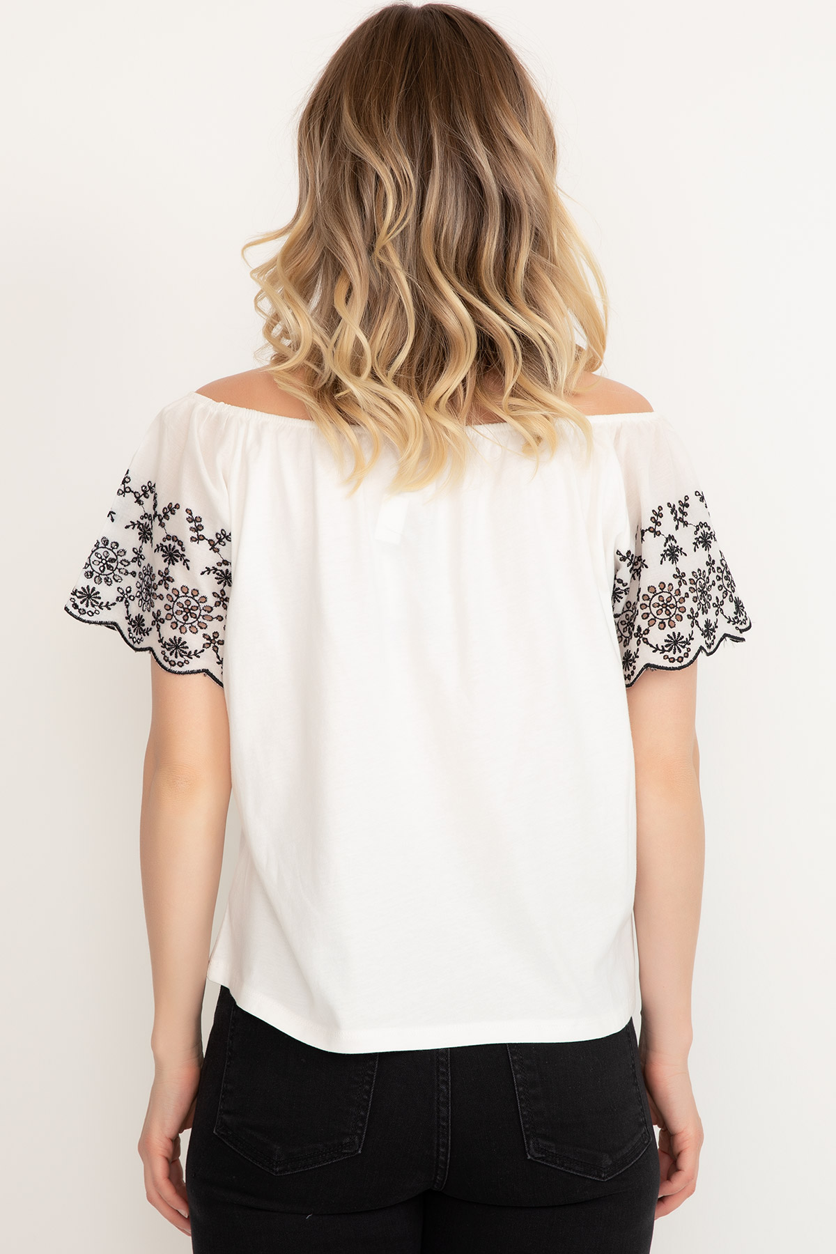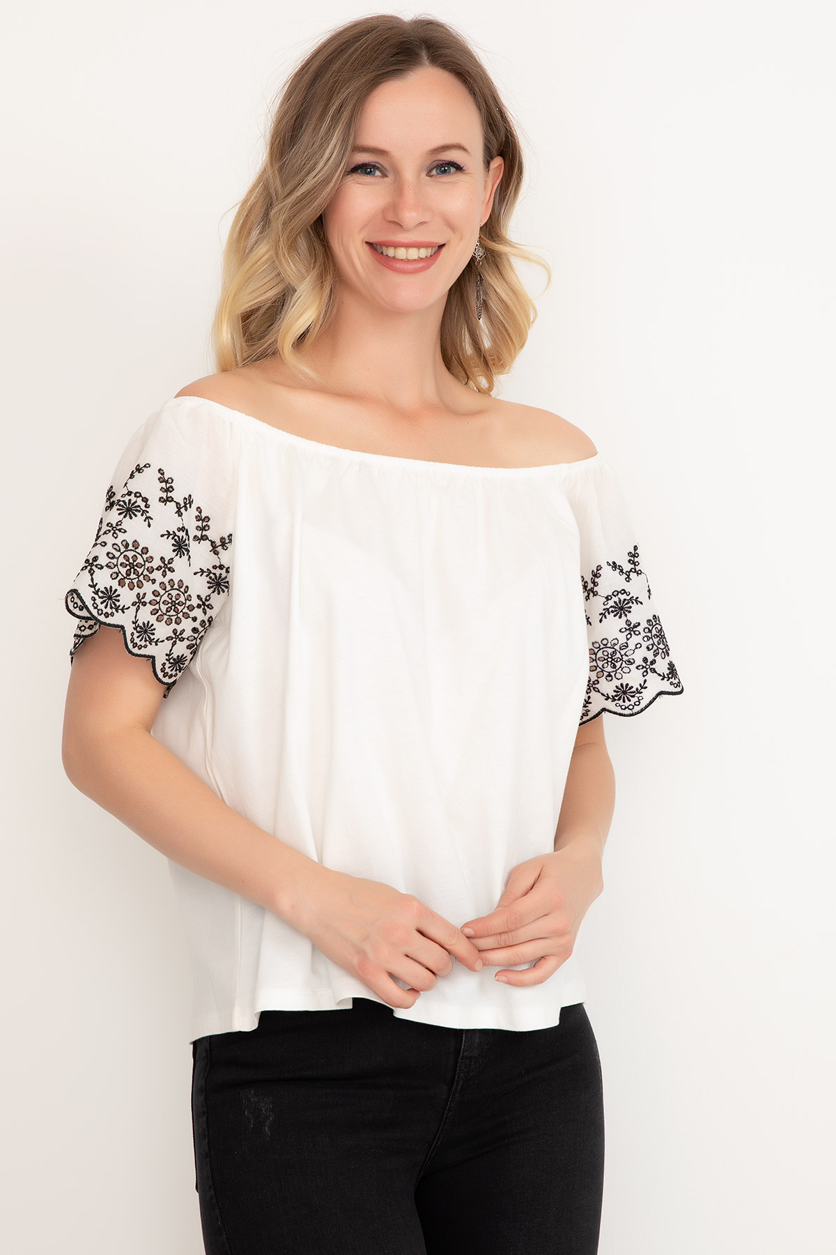 Kayık Yaka Kol Detaylı Bluz-Krem