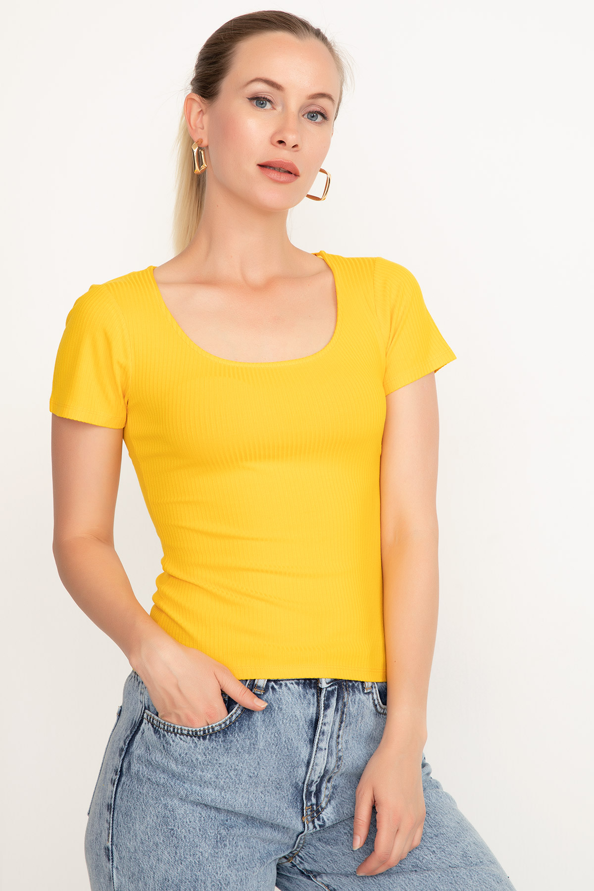 Sıfır Yaka Kısa Kol Bady-Sarı