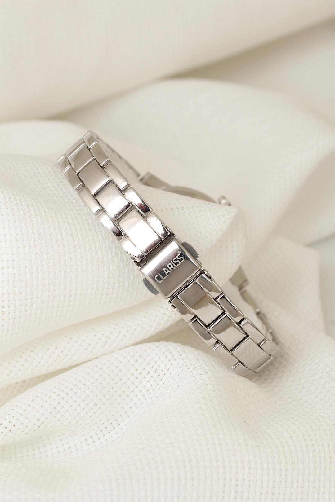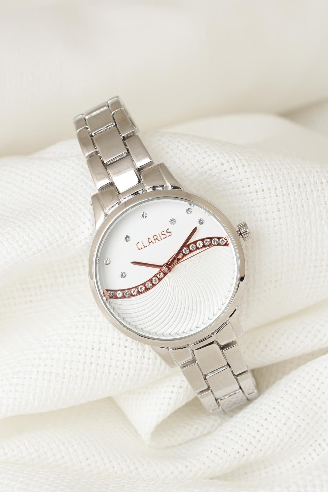 Silver Renk Metal Kordonlu Beyaz Renk Zirkon Taşlı İç Tasarımlı Clariss Marka Bayan Kol Saati-Gümüş