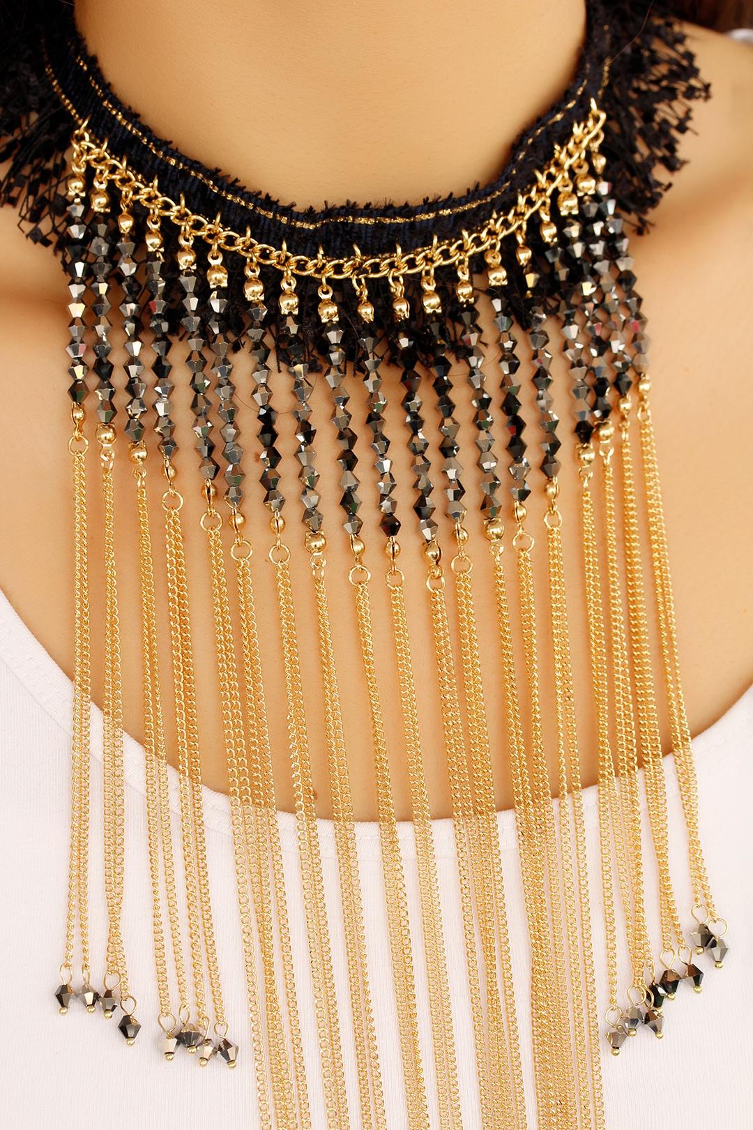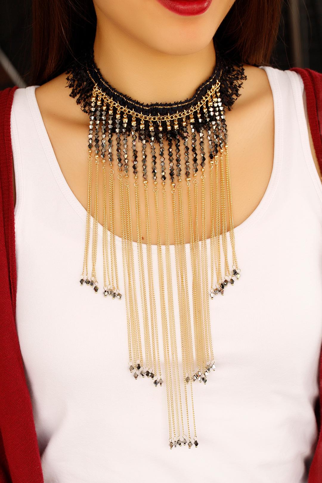 Taş ve Dantel Tasarım Bayan Kolye-Altın